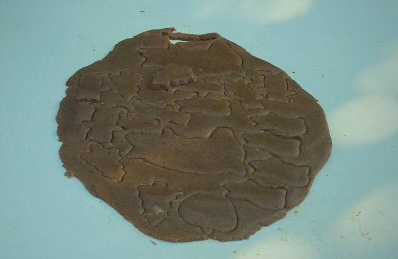Derreter a manteiga, juntar os restantes ingredientes e misturar bem. Moldar em forma de rolo e com uma faca cortar em bolachas que se vão colocando num tabuleiro de ir ao forno untado (ou com papel vegetal anti-aderente) deixando espaço para que cresçam.